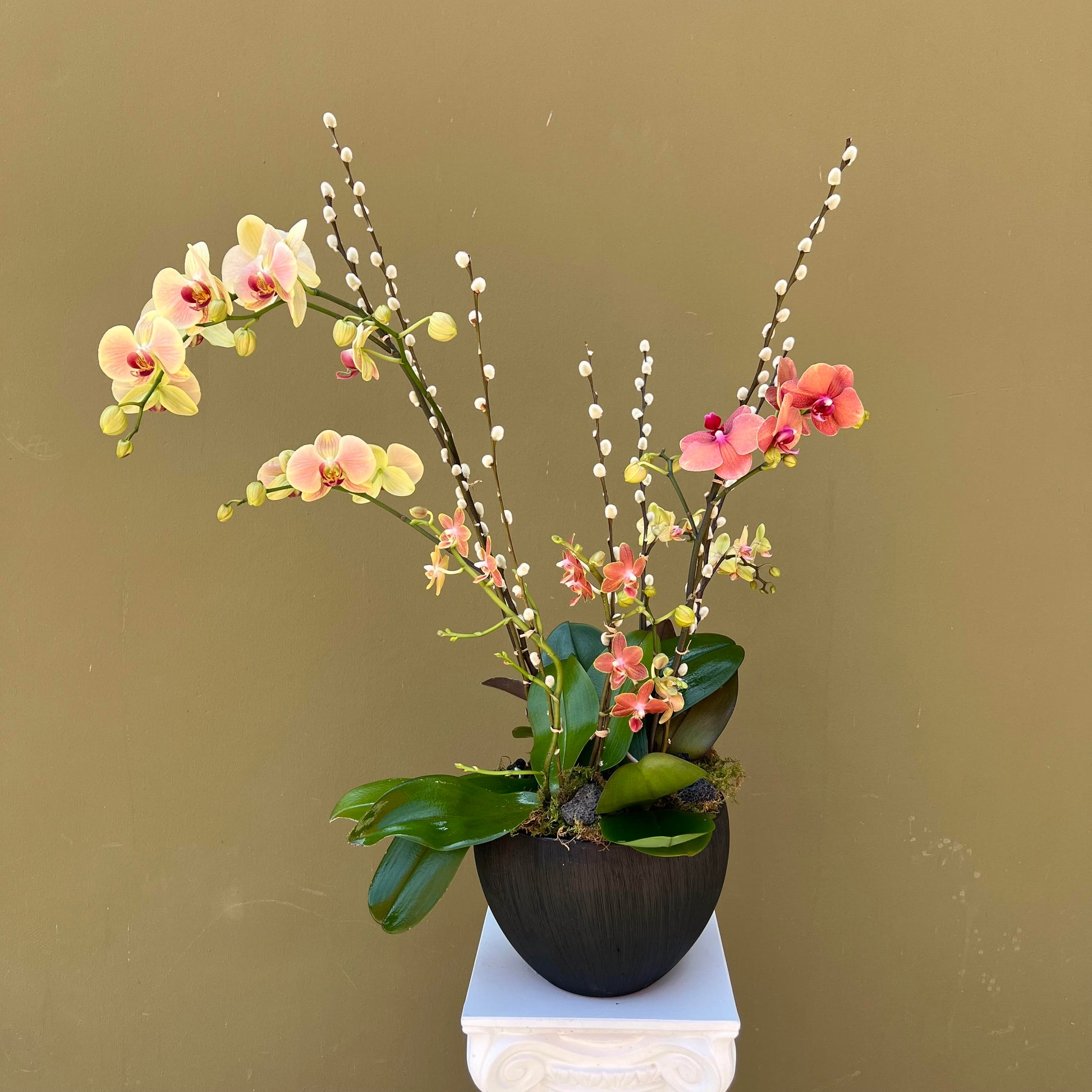 Similar to our popular Designer's Choice flower arrangements, our stunning Customized Orchids are one-of-a-kind artistic pieces handmade by our team. Orchids are timeless flowers, so it's no wonder they're a favorite for many occasions. Let us create a custom phalaenopsis orchid arrangement to your specifications. Our floral designers can create a stunning arrangement for you with potted orchids and dressings like moss, dried flowers, dried fan leaf, and more!