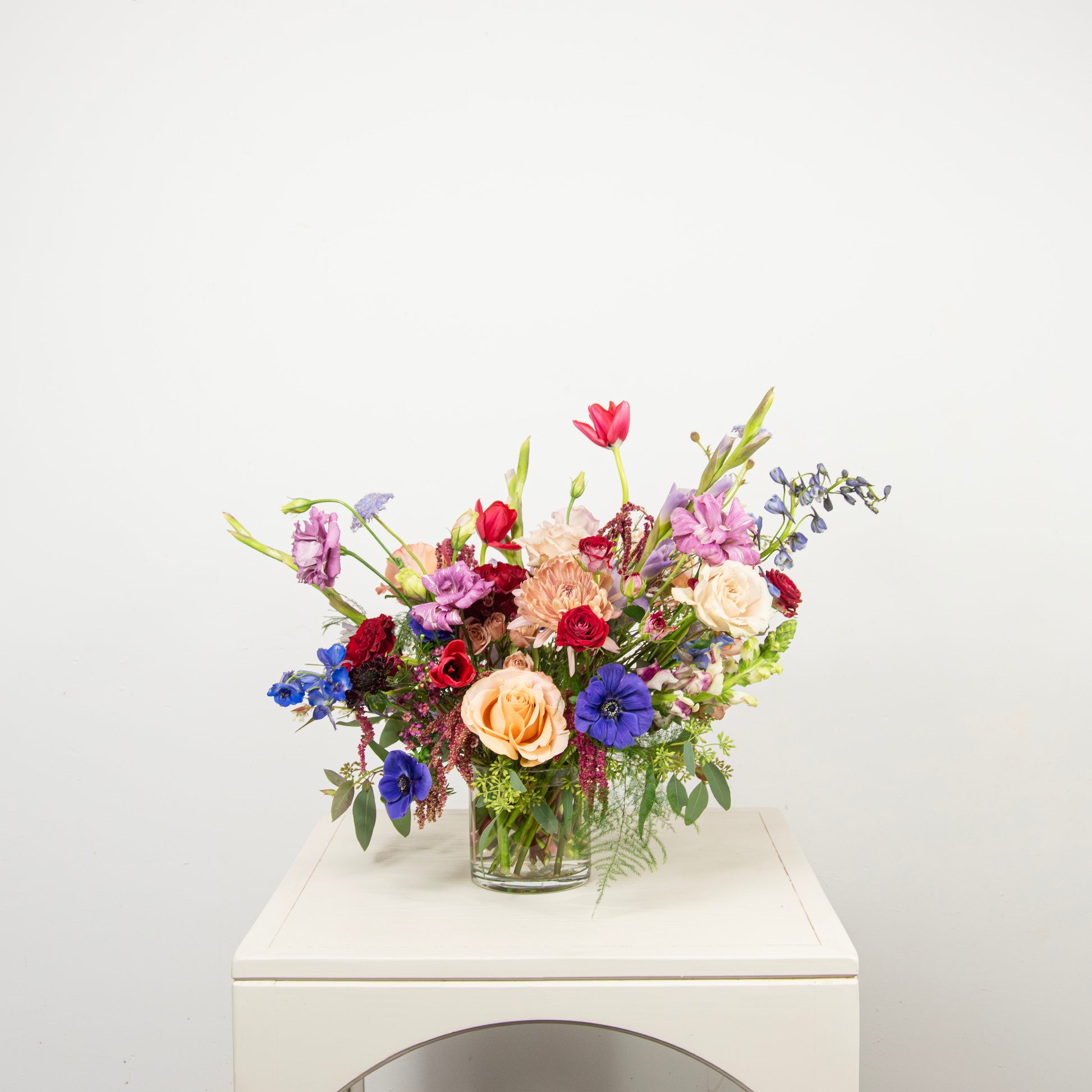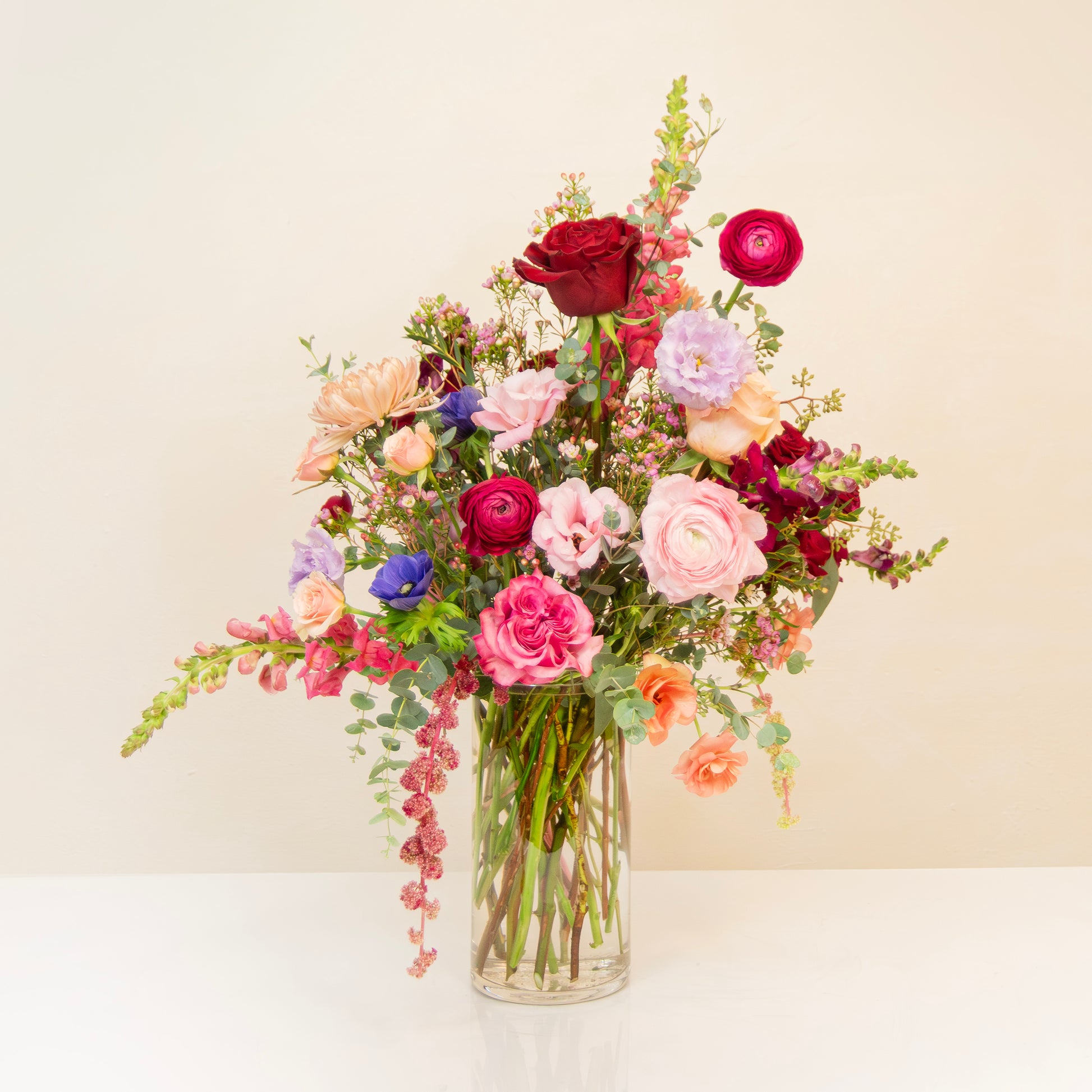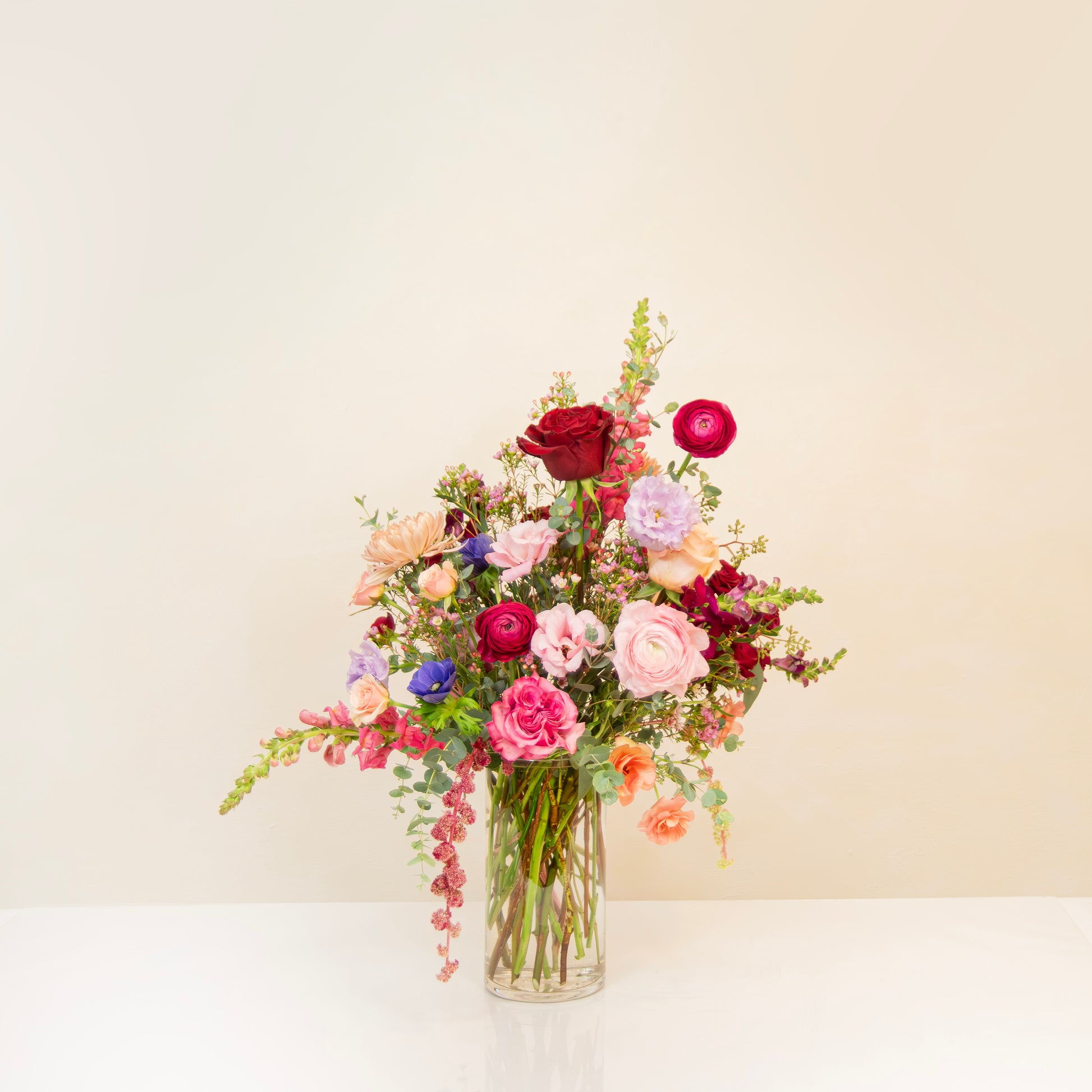 Can't decide which of our arrangements you like more? Let us make an entirely unique flower arrangement for your valentine on Valentine's Day! Our designers will create a beautiful, one-of-a-kind arrangement packed with premium seasonal flowers, tailored to your budget. Expect a beautiful blend of stunning blooms and textures that perfectly captures the occasion and celebrates love! Any special instructions can be added once the arrangement is placed in your cart.